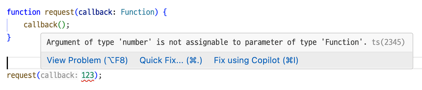 위에서 callback이 function 타입인지 아닌지 보장할 수 없습니다. 쉽게 예측할 수 없다면 프로그래머는 발생할 수 있는 오류를 계속해서 머릿속으로 떠올리고 있어야 합니다. 머리에 과부하가 옵니다. 과부하를 줄이기 위해 코드를 방어적으로 짜게 됩니다. 점차 코드의 가독성이 떨어지고 생산성도 떨어집니다.